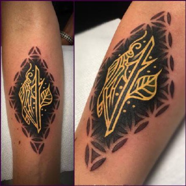 手臂上的黑色和黄色草花纹身