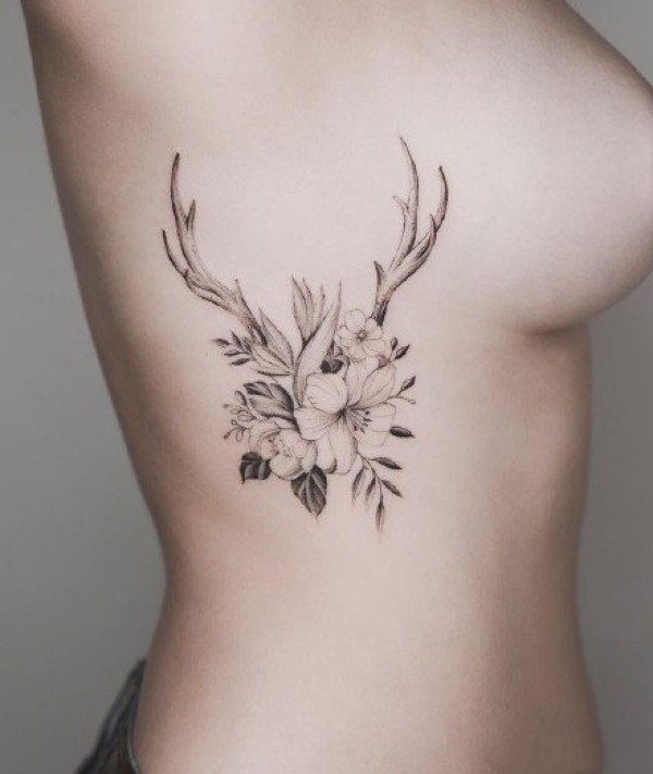 漂亮的一组黑灰鹿角纹身图片欣赏
