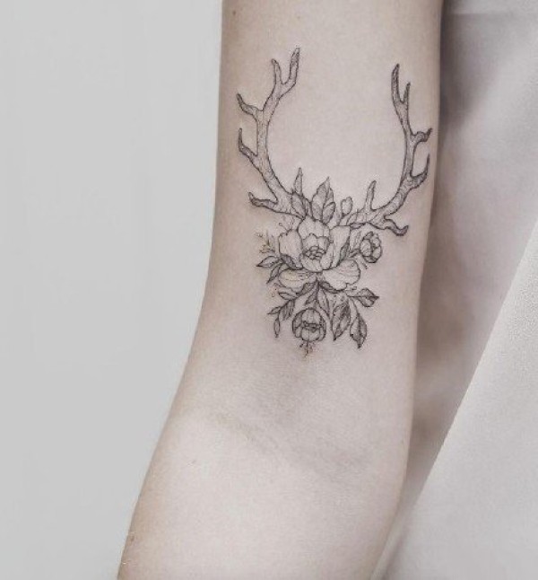 漂亮的一组黑灰鹿角纹身图片欣赏