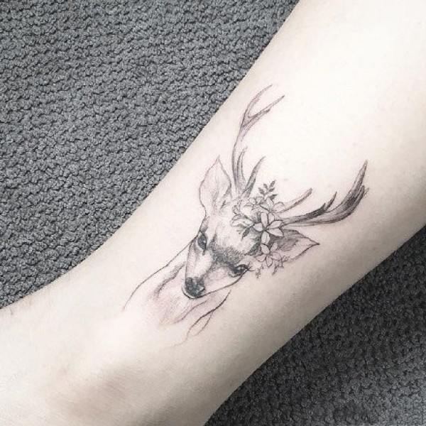 文艺鹿纹身 女生手臂上文艺鹿纹身图片