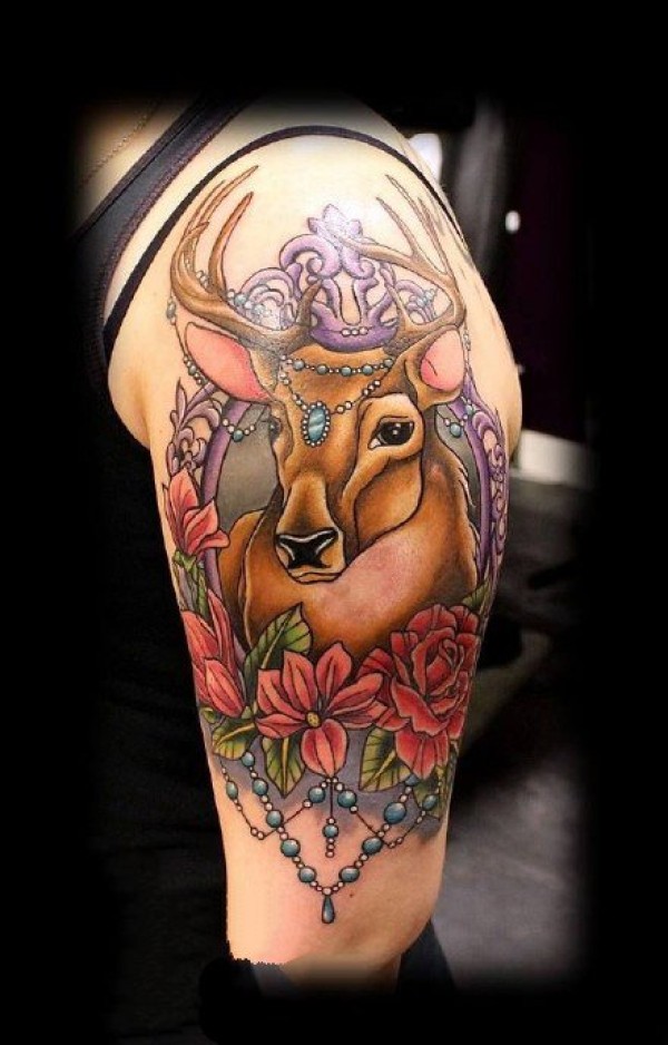 鹿头文身:一组漂亮的小鹿头纹身作品9张