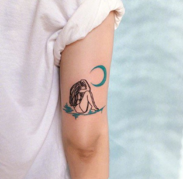 15款女神纹身小清新纹身月亮简单个性线条纹身图案