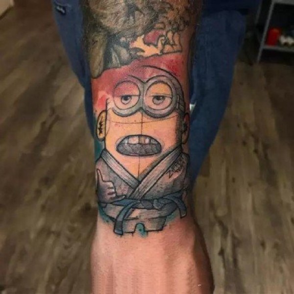 纹身图吧分享一张手臂彩色小黄人文身作品