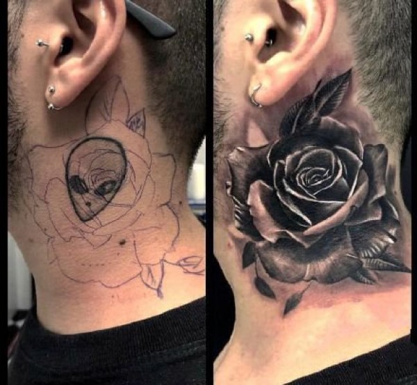 用玫瑰花做的修改遮盖纹身图案前后对比图