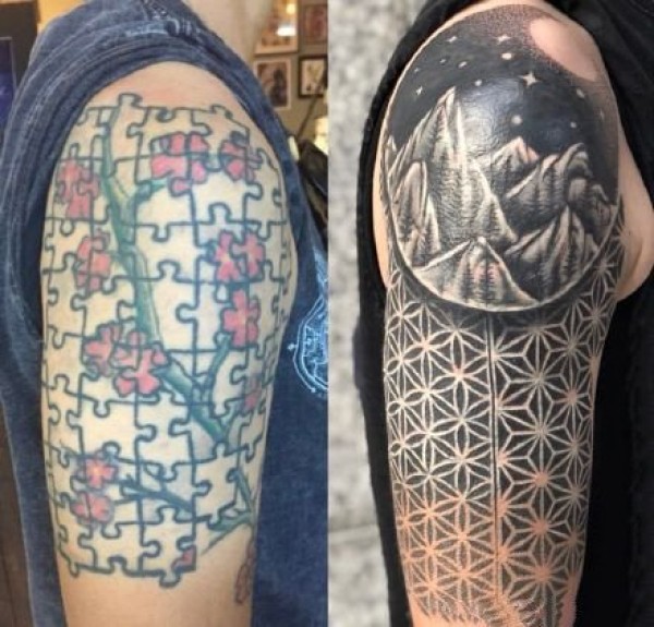 适合遮盖修改旧纹身和伤疤的纹身效果对比图欣赏