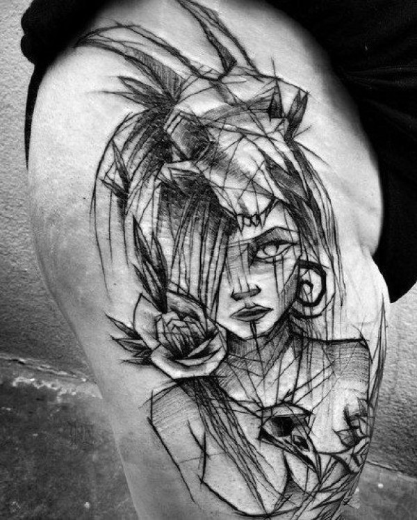 极简线条纹身 多款极简线条纹身素描欧美抽象纹身图片