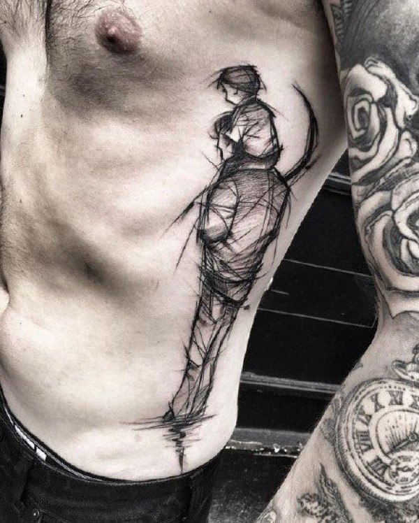 极简线条纹身 多款极简线条纹身素描欧美抽象纹身图片