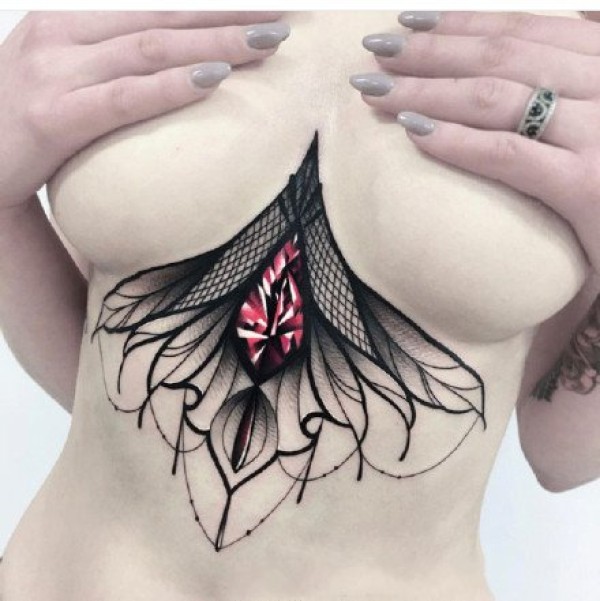 女生身上很性感的宝石蕾丝链纹身图案欣赏