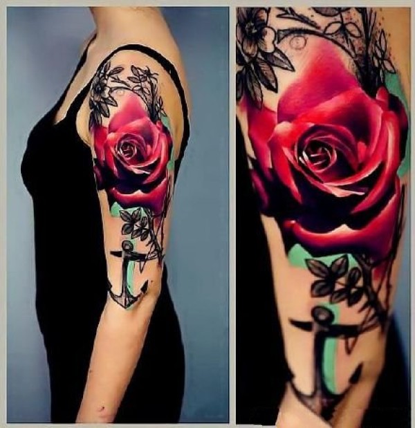 绚丽多姿的鲜艳玫瑰花纹身图案作品9张