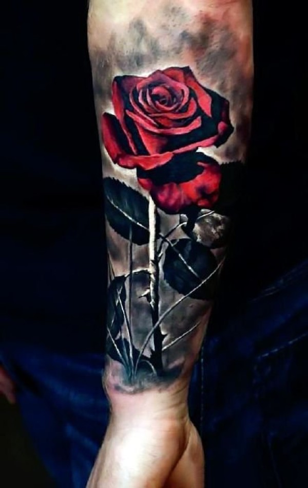 绚丽多姿的鲜艳玫瑰花纹身图案作品9张