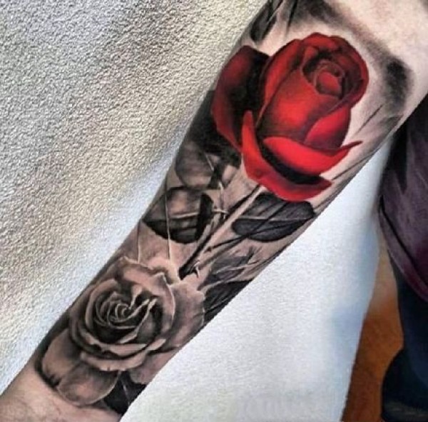 娇艳玫瑰手臂纹身_玫瑰花纹身图案大全_纹身图吧