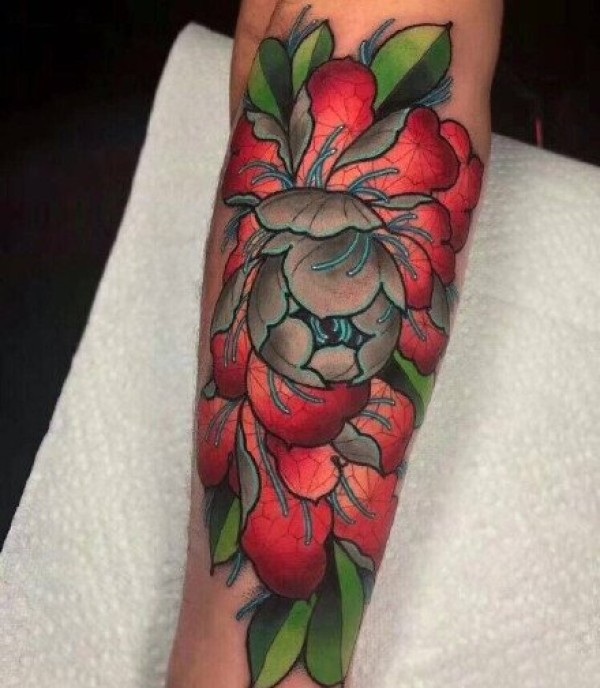 红绿搭配的颜色绚丽的花卉纹身图案作品