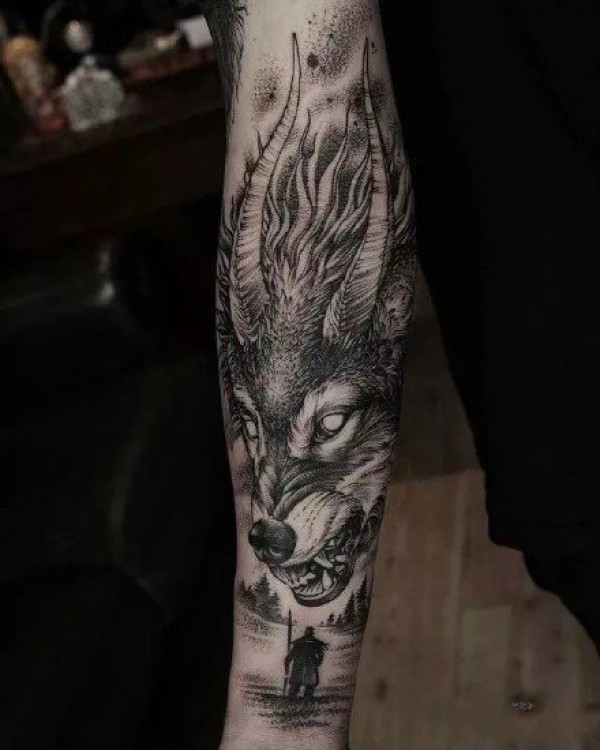 男性喜欢的霸气黑灰点刺纹身图案作品9张