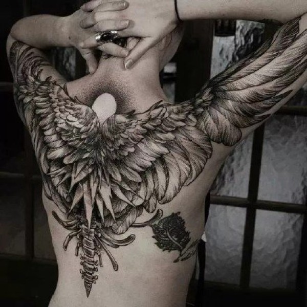 新传统风格的9张男性黑灰大满背纹身图案图片