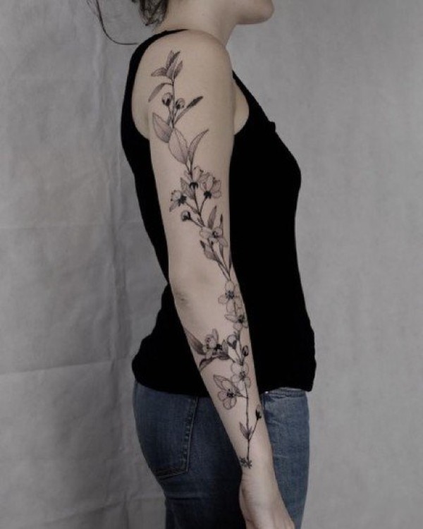 手臂和腿部上的简约长线条花卉纹身欣赏