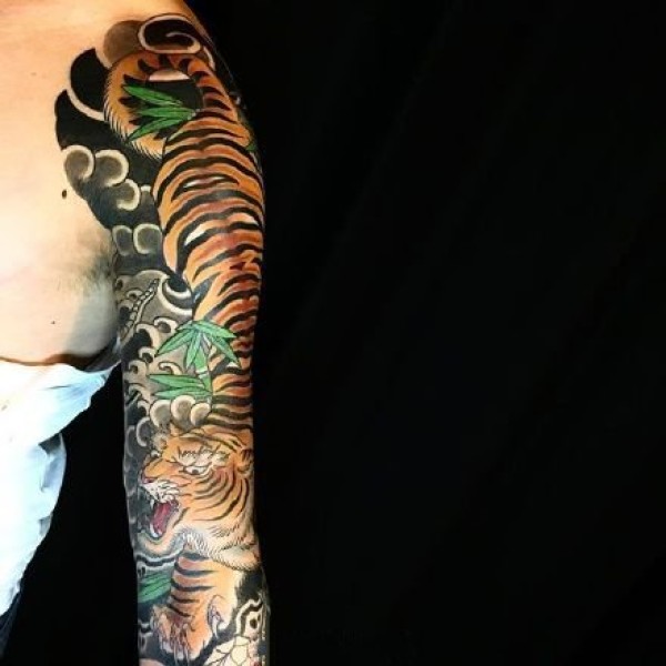 男性们都喜欢这样帅气的凶猛的老虎纹身图案