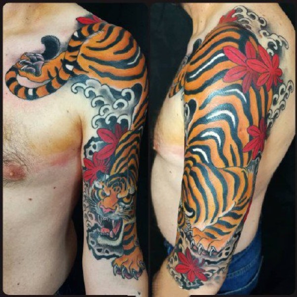 男性们都喜欢这样帅气的凶猛的老虎纹身图案