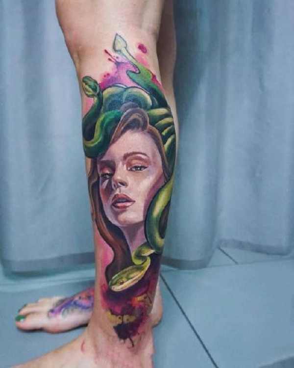 女生人物纹身图案 女生小腿上女生人物纹身图案