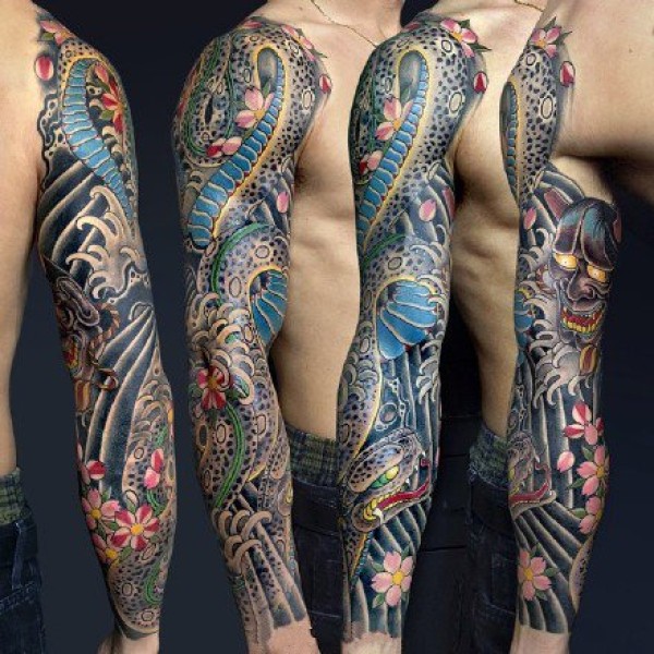 传统风格的一组男性花臂和花腿纹身图案欣赏