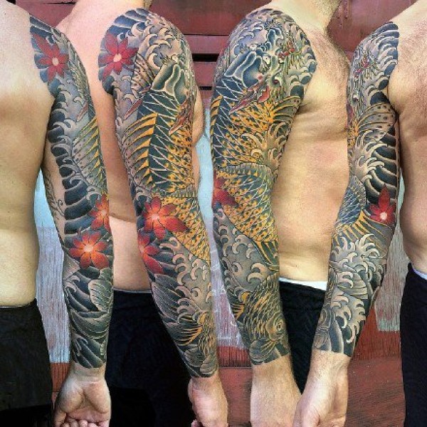 传统风格的一组男性花臂和花腿纹身图案欣赏