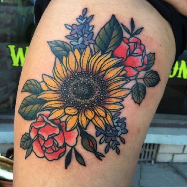 适合女生的一组很漂亮的小清新向日葵纹身图