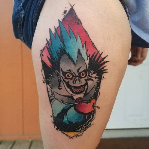 清爽的蓝绿色动漫角色等纹身图案--国外纹身师 Kara Klenk