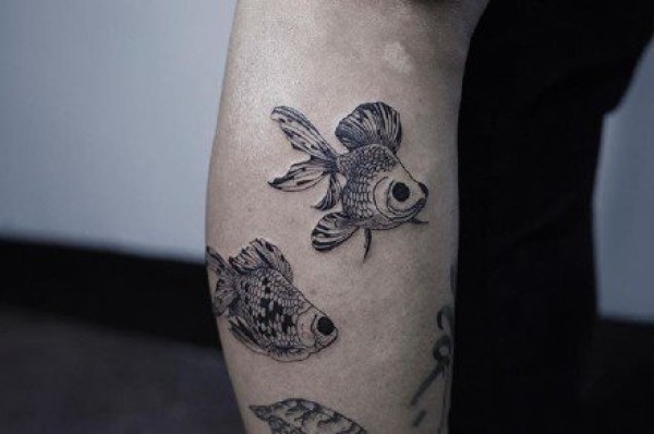 金鱼纹身 漂亮的9张唯美彩色小金鱼纹身图案
