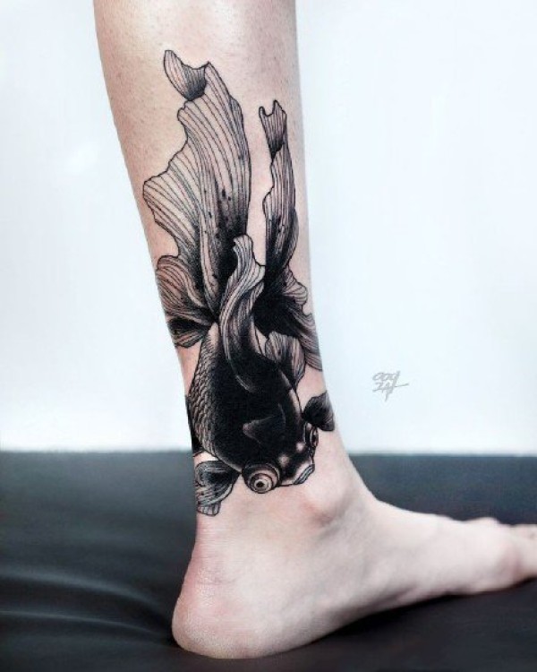金鱼纹身 漂亮的9张唯美彩色小金鱼纹身图案
