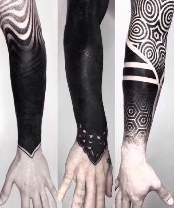 超黑元素的一组国外纹身师手部黑色纹身作品图案欣赏