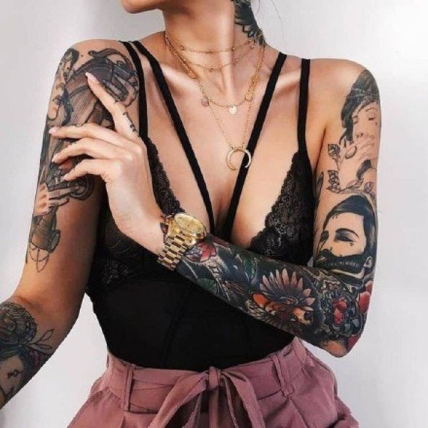 丰乳肥臀的性感美女和绿色老爷车纹身