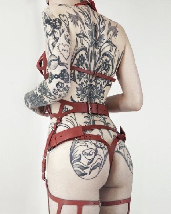 丰乳肥臀的性感美女和绿色老爷车纹身