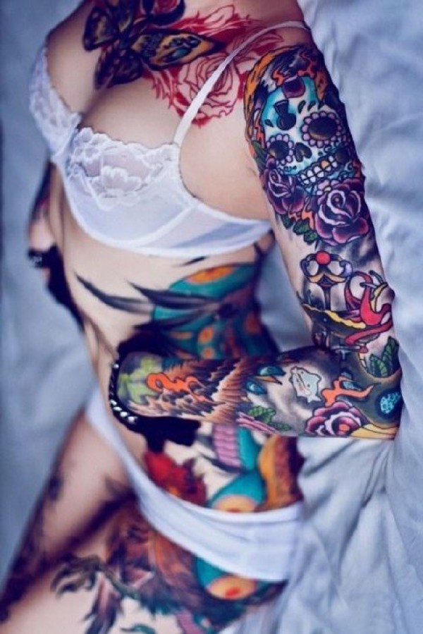 拥有大花臂的性感花臂女性纹身图片展示