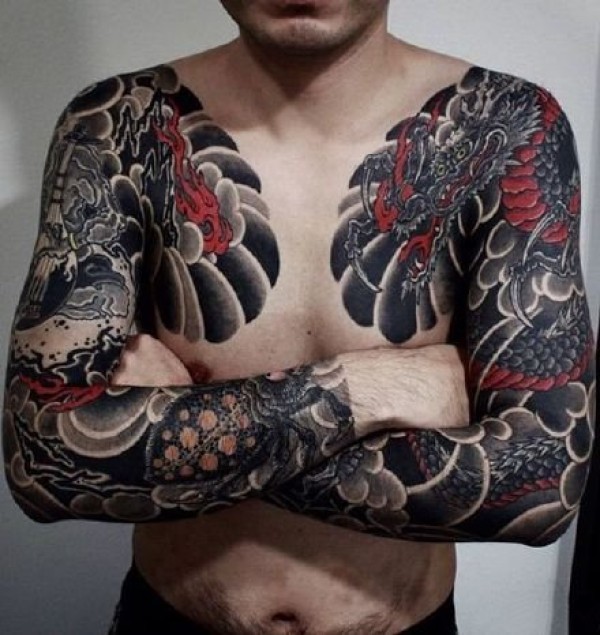 9张男士霸气的双半甲花臂纹身图案作品欣赏