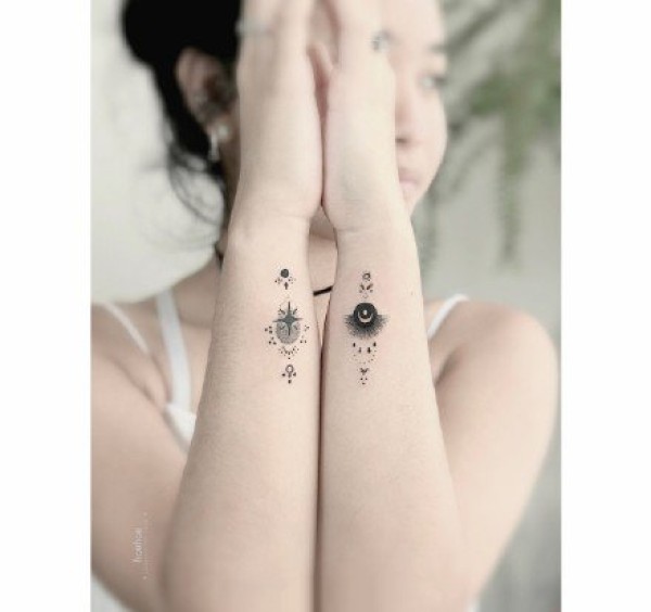 双子座纹身手稿_29张十二星座之双子座纹身图案手稿