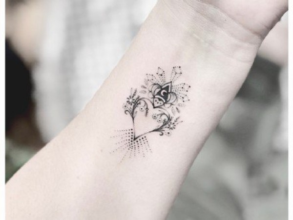 心脏纹身图案 女生手臂上黑灰纹身心脏纹身图案