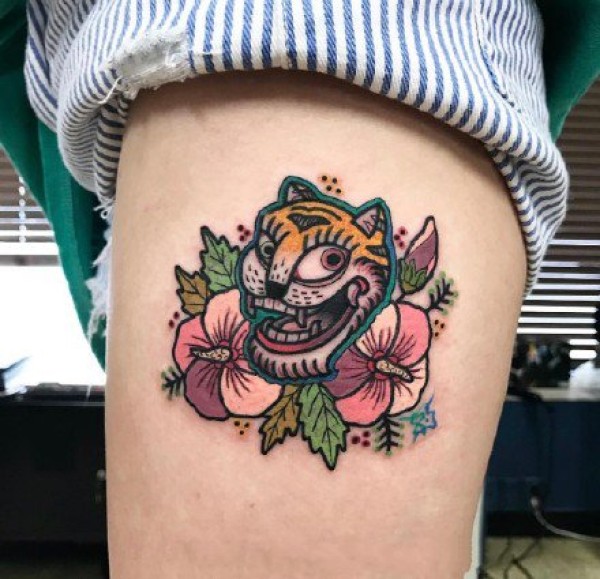 萌萌哒oldschool风格的小老虎纹身图案图片