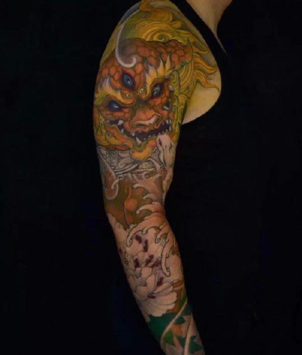 传统风格的一组男性花臂和花腿纹身图案欣赏