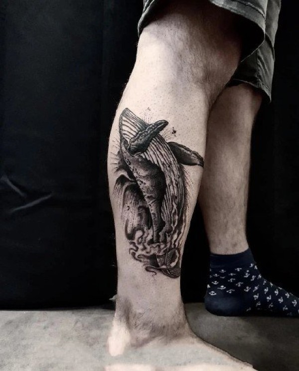 一组和鲸鱼主题相关的纹身图案作品和手稿欣赏