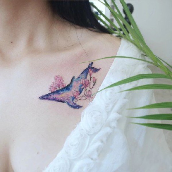9张唯美的星空和鲸鱼搭配的纹身图案