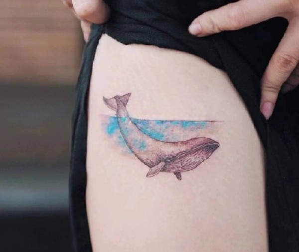 9张漂亮的水彩色鲸鱼纹身图案作品