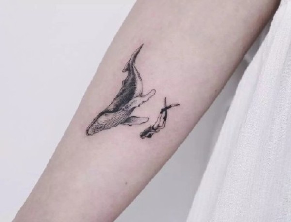 萌萌的鲸鱼纹身--适合女生的小清新鲸鱼纹身图案作品