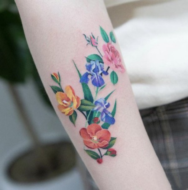 逼真的超现实主义花纹身图案来自纹身师莫拉莱斯