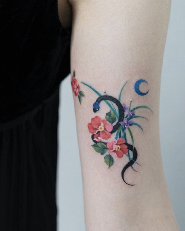 逼真的超现实主义花纹身图案来自纹身师莫拉莱斯