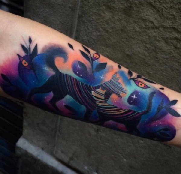 看着眼花的扭曲变形风格的纹身图案--白俄罗斯文身师Giena Todryk作品