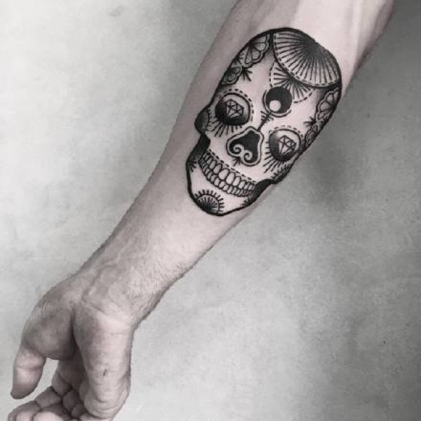 手臂等部位简约又好看的点刺黑灰纹身图案