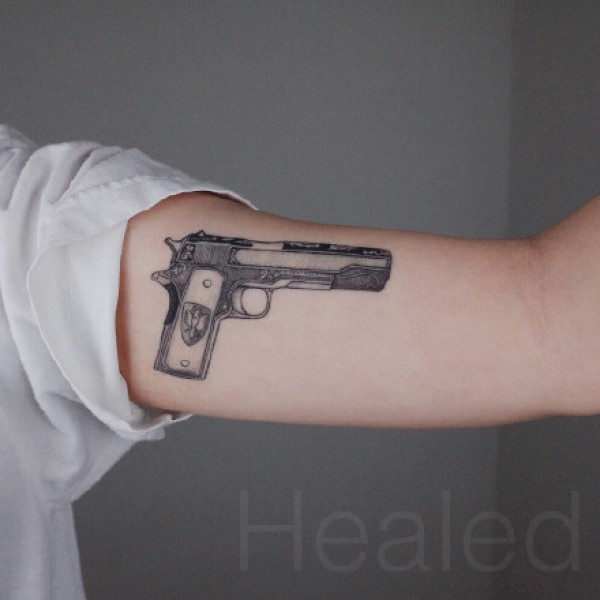 小手枪纹身 小黑色的9张手枪纹身图案欣赏