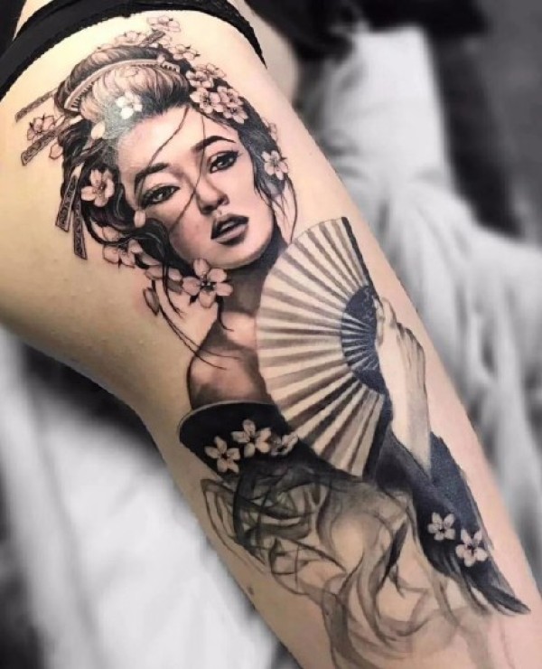 艺伎纹身--一组独特创意的日式艺妓纹身图案作品