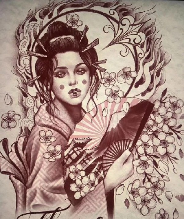 9张艺妓相关的艺伎纹身手稿和图案作品欣赏
