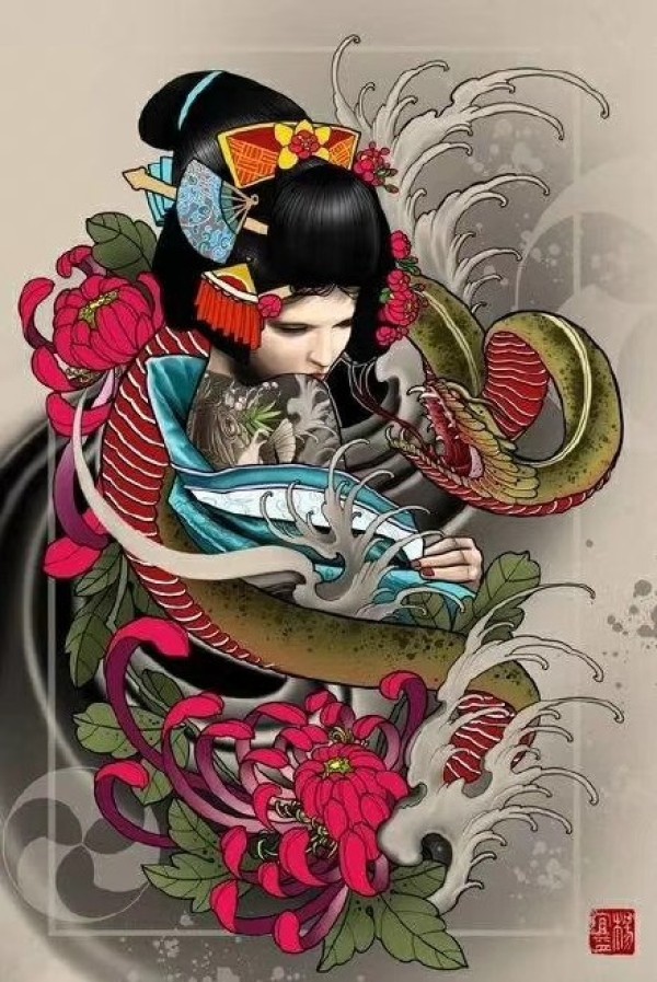 艺伎纹身--一组独特创意的日式艺妓纹身图案作品