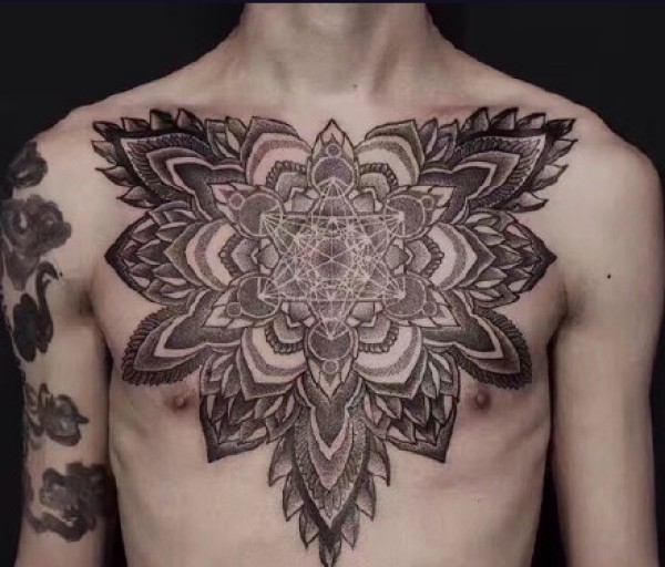 花胸纹身--一组男性霸气的大花胸纹身图案作品欣赏